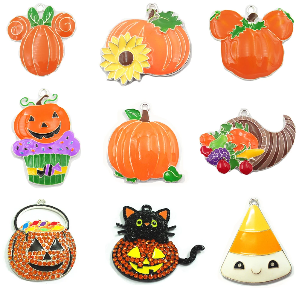 10 шт./пакет Хэллоуин серии продуктов: Стразы/эмаль ведьмы, кекс, пижамы с принтом «призрак» Тыква Корзины/подвески в виде кота