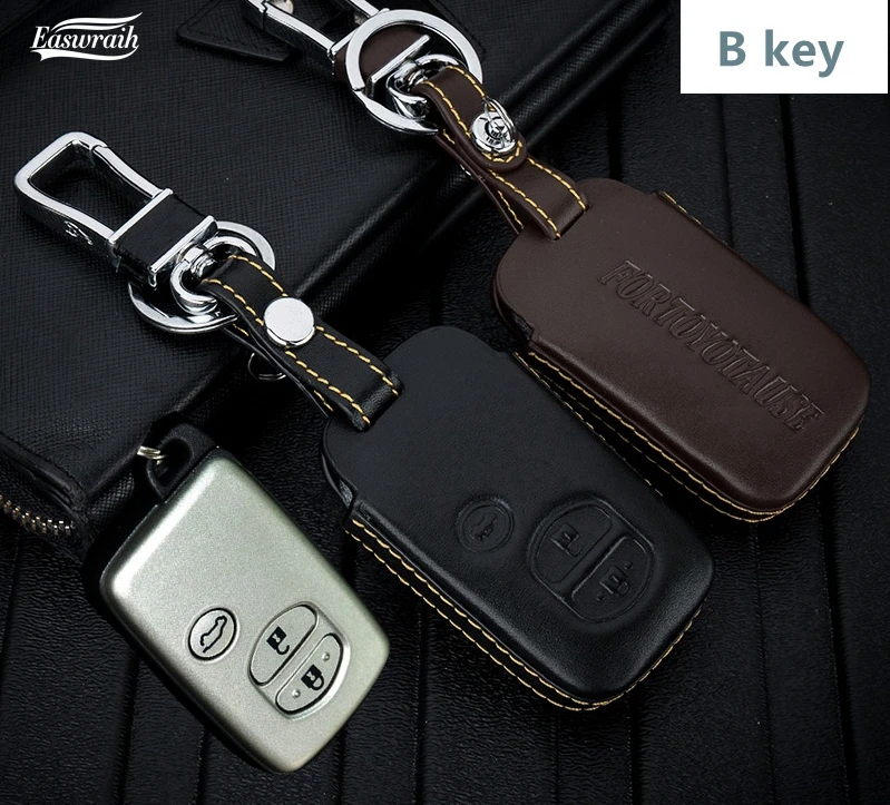 2017 Подарок Кожаный Автомобильный держатель для ключей для Toyota Camry Highlander Prado Crown Land Cruiser Prius Vitz 3 кнопки Smart Key