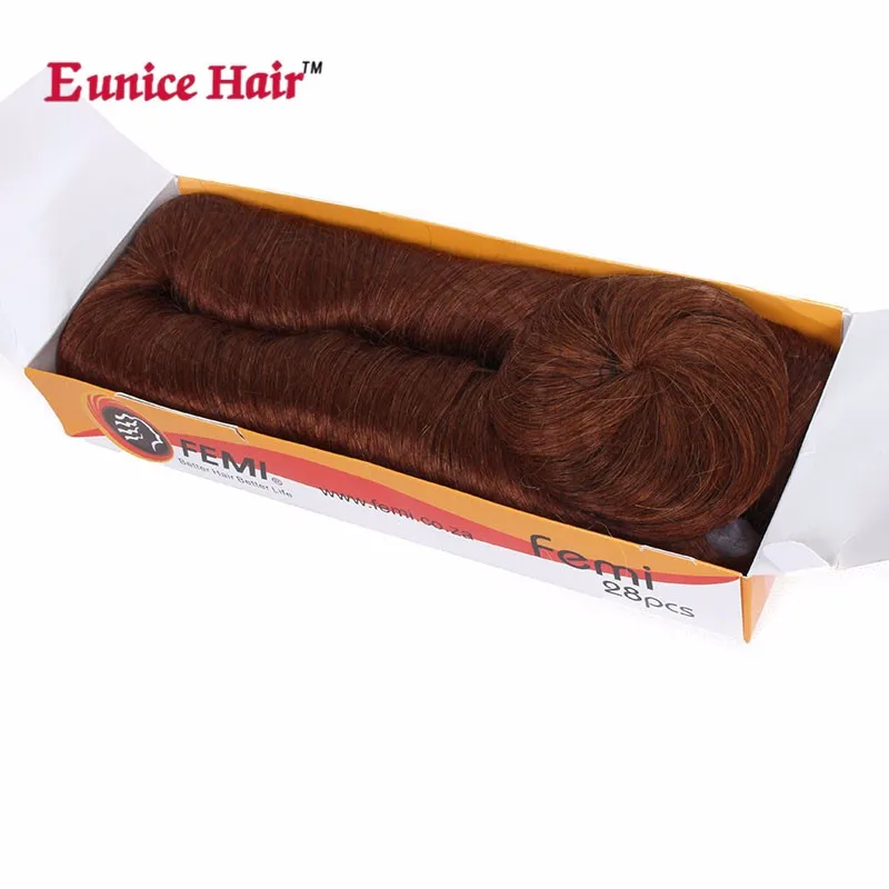 Материал: высокотемпературное волокно Бренд: Eunice hair Тип изделия: короткое плетение волос Длина: 4-6 дюймов Цвета: черный/#2/#4/99J Изделий в упаковке: 28 шт./упак. фиксаторами на прищепке (90 г)