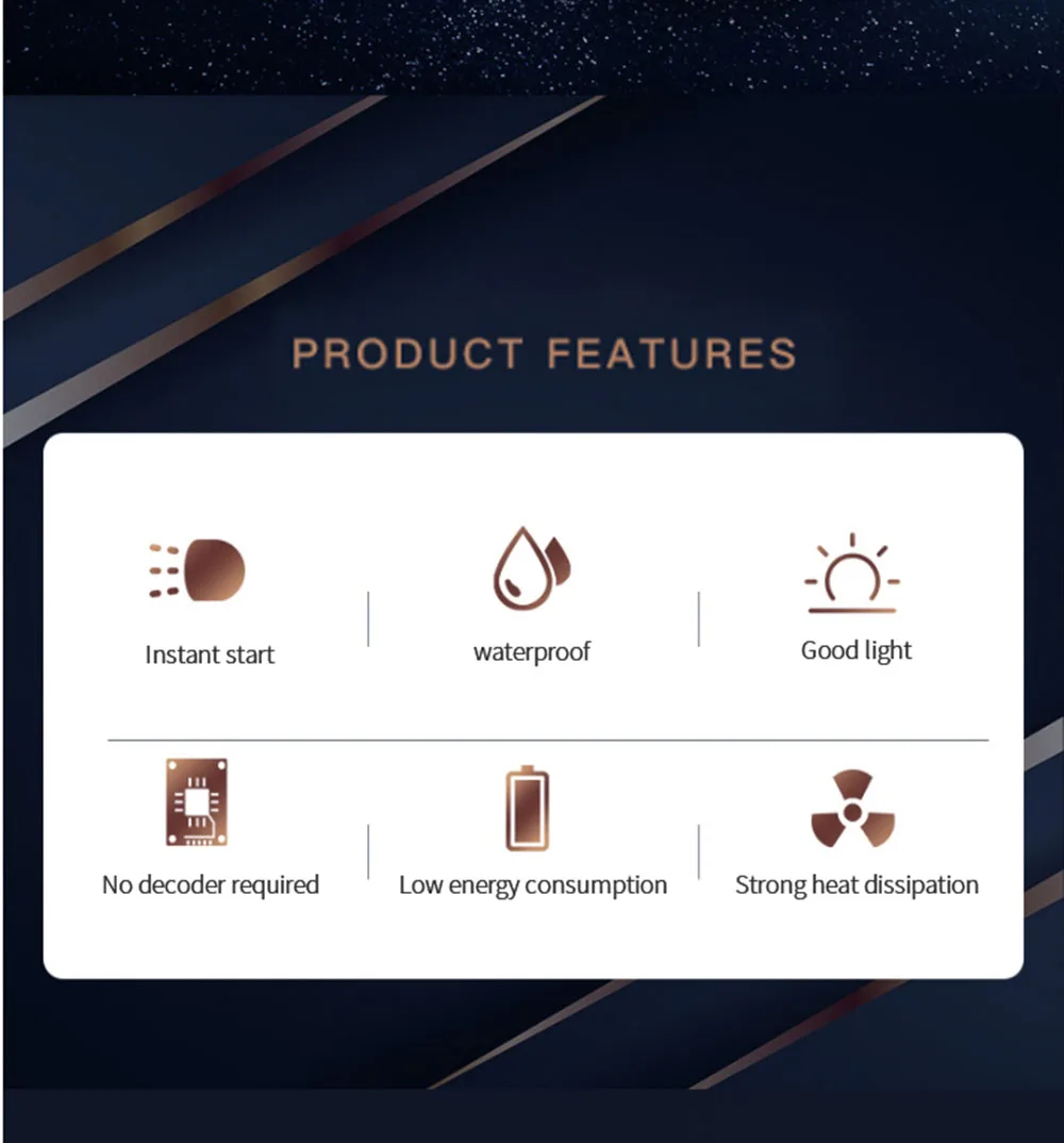 Размер: Мини-размер, подходит для более чем 99% моделей автомобилей Луч: Специальный дизайн, обеспечивает лучший светильник, форму в линии и точечный светильник Высокие Люмены: Использование высококачественных чипов, высокая светоотдача. Всего 90 Вт при 16лм на пару, в 5 раз ярче галогенных ламп Более яркие фишки, высокое качество и долгий срок службы; Прочная заклепка (Многие другие чипы автомобильных фар фиксируются винтами; Их легко отвалить) Материал: Металлический материал, более роскошный и длительный срок службы Гнездо зажима: Прочный металлический зажим, вращающийся на 360 градусов для регулировки луча Особенности: Мощность: 90 Вт/комплект Световой поток: 16лм/комплект Рабочее напряжение: 9-32 В постоянного тока (подходит для транспортных средств 0-12 В) IP67 Номинальное уплотнение воды и пыли, угол луча 360 градусов Материал: авиационный 6063 алюминиевый профиль Рабочая температура: -40-80 градусов Цельсия Срок службы более 500 часов Использование: головной светильник, противотуманный светильник Двусторонний канал рассеивания тепла 1. Все-в-одном алюминиевый профиль в качестве теплопроводящей системы, 360 градусов тепло излучение Адаптер: Внешний адаптер водонепроницаемый для более длительного срока службы Plug-N-Play (Canbus-ready, EMC-ready): Canbus-ready, никаких ошибок и проблем с вспышкой (для 99% транспортного средства) Размер идеально подходит для ваших фар и подключается непосредственно к розеткам. EMC-ready, не нужно беспокоиться о радиопомехах 0,1 секундный 100% светильник Простая установка: Все-в-одном Алюминиевый материал и дизайн позволяют легко установить. Plug-and-Play Прямая замена через 20 минут. Для некоторых автомобилей, пришлось сделать небольшую регулировку адаптера, чтобы получить правильный светильник Вентилятор: Система охлаждения с мощным турбо-вентилятором с 12 000 об/мин, быстрое охлаждение, сохраняет супер долгое время освещения. Водонепроницаемость: Хорошо запечатанный, высокая степень водонепроницаемости, IP 67 Посылка включает в себя: 2x супер яркие светодиодный лампы для автомобильных фар 1х коробка