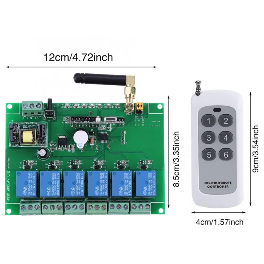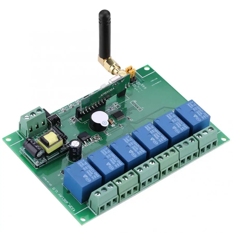 Мгновенный, самоблокирующийся и блокирующий, 3 команды. Этот 6-канальный Многофункциональный радиочастотный приемный контроллер предназначен для отправки открытого сигнала и близкого сигнала на 6 реле. Аппликатор для реле включает в себя области ворот с электронным управлением, окон, подъемных приборов, переключателей, подъемников, промышленного контроля, индустрии безопасности и т. Д. Высокая стабильность и низкая мощность. Удобное использование, просто научитесь соответствовать коду пульта дистанционного управления и принимающего контроллера.