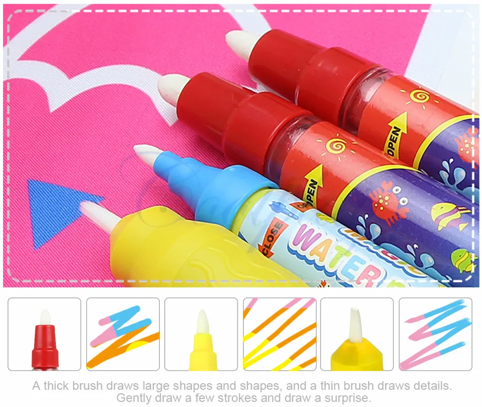 1. Ручки заполняются без красителя. Это бесцветная, Безворсовая и Нетоксичная вещь. Что является чистым и безопасным для детей и детей, не будет Пятен дома. 2. Цвет на коврике исчезнет автоматически, его можно использовать многократно для удовлетворения потребностей ребенка в живописи и развития их фантазии 3. Коврик для каракулей изготовлен из высококачественной и экологически чистой ткани, которую можно нарисовать многократно и сохранить бумагами.