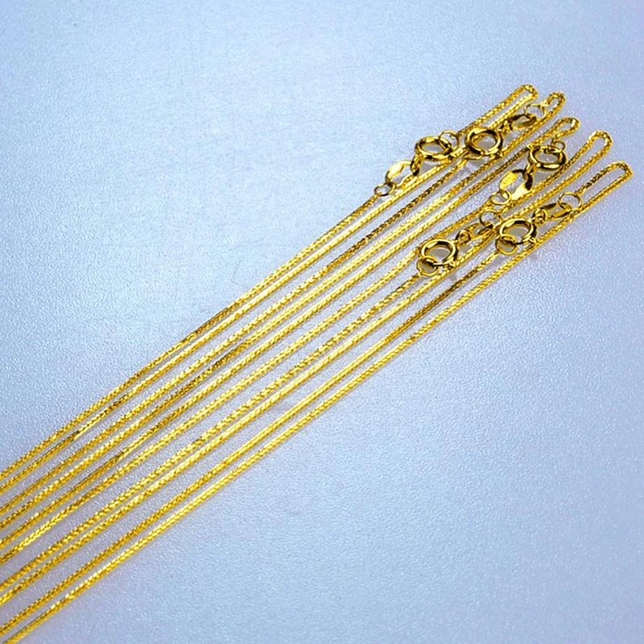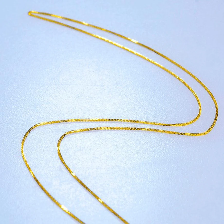 Цепь является гарантией 100% 18-каратного золота (AU750). Содержат 75% настоящего золота. Он немного тонкий. Ширина цепи около 1,0 мм. Но очень блестящий.