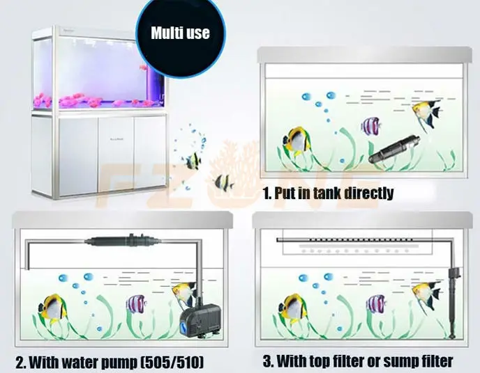 Это оборудование может убить вредные зародыши и водоросли в аквариуме и пруду, который обеспечивает здоровую окружающую среду для рыбВнимание: