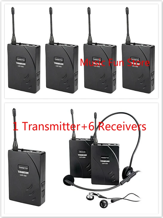 Беспроводная система гида Takstar UHF-938/ UHF 938 UHF частота 1 передатчик + 6 приемников для экскурсий и т. Д.
