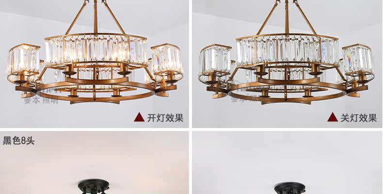 1. Вход: AC90 ~ 260 В пер. тока, 50 / 60 Гц 2. Тип основания: Диаметр 60 см, 6 головок, 6 * E14 80 см в диаметре, 8 головок, 8 * E14 3. Основной материал: кристалл 4. Цвет корпуса: черный или коричневый 5. Размеры6. Упаковка: светодиодный светильник не входит в комплект, Мы высылаем, если, к сожалению, повреждения при транспортировке, мы предполагаем.
