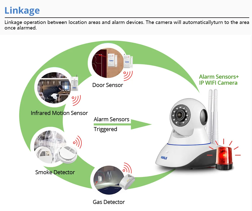 A: ip-камера с функцией системы сигнализации, она может работать с беспроводными датчиками в качестве системы сигнализации