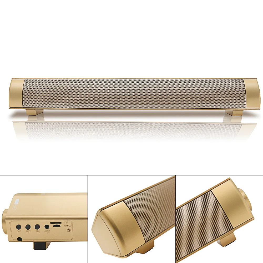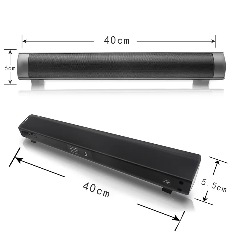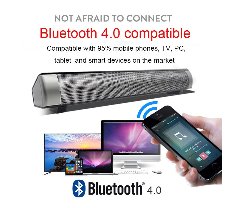 Технические характеристики: Версия Bluetooth: 4,0 Выходная мощность: 5 Вт * 2 Отношение сигнал/шум: ≥ 75dB Рабочее напряжение: 5 В постоянного тока Размер изделия: 400*55*60 мм Корпус: пластик/Сетевая рейка Интерфейс: AUX Форматы Воспроизведения: MP3 Частотная характеристика: 100 Гц -- 18 кГц Подключение: подключение по Bluetooth Интерфейс Тип: 3,5 мм гнездом для наушников Расстояние дистанционного управления: 10 м Особенности: 1. Используйте Bluetooth стерео модуль, легко сопряжение с устройствами с поддержкой Bluetooth, расстояние передачи 10 м. 2. Совместим практически со всеми мобильными устройствами с поддержкой Bluetooth, такими как, для iPhone6 6Plus 5S 5, для Samsung Galaxy S6 S5 S4 / Note 4 3 2, для HTC One, планшетных ПК, ноутбуков, И т. Д. (Не подключается ко всем устройствам, некоторые устройства bluetooth не могут подключаться) 3. Мощный поставщик, всегда обеспечивающий лучшее качество по отличной цене. 4.OCD QC,mutil-test, мульти-проверка. 5. Двойные 5 Вт импортные динамики 6. Настоящий сабвуфер 7. Воспроизведение музыки по Bluetooth 8. Функция Handfree call 9. Поддержка tf-карты 10. Дистанция дистанционного управления 10 м Посылка Содержание: 1x LP-08 ТВ Bluetooth динамик(Без розничной коробки) 1x аудио кабель 1x Usb кабель 1x адаптер 1x пульт дистанционного управления