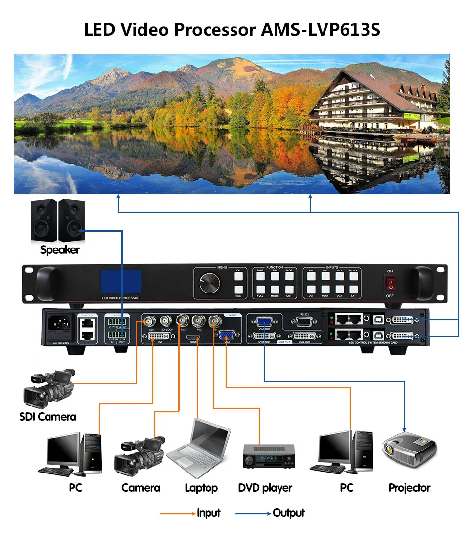 AMS-LVP613S светодиодный экран видео аудио процессор SDI HDMI DVI VGA CVBS Поддержка один ключ замораживание и черный экран PIP поп Функция светодиодный