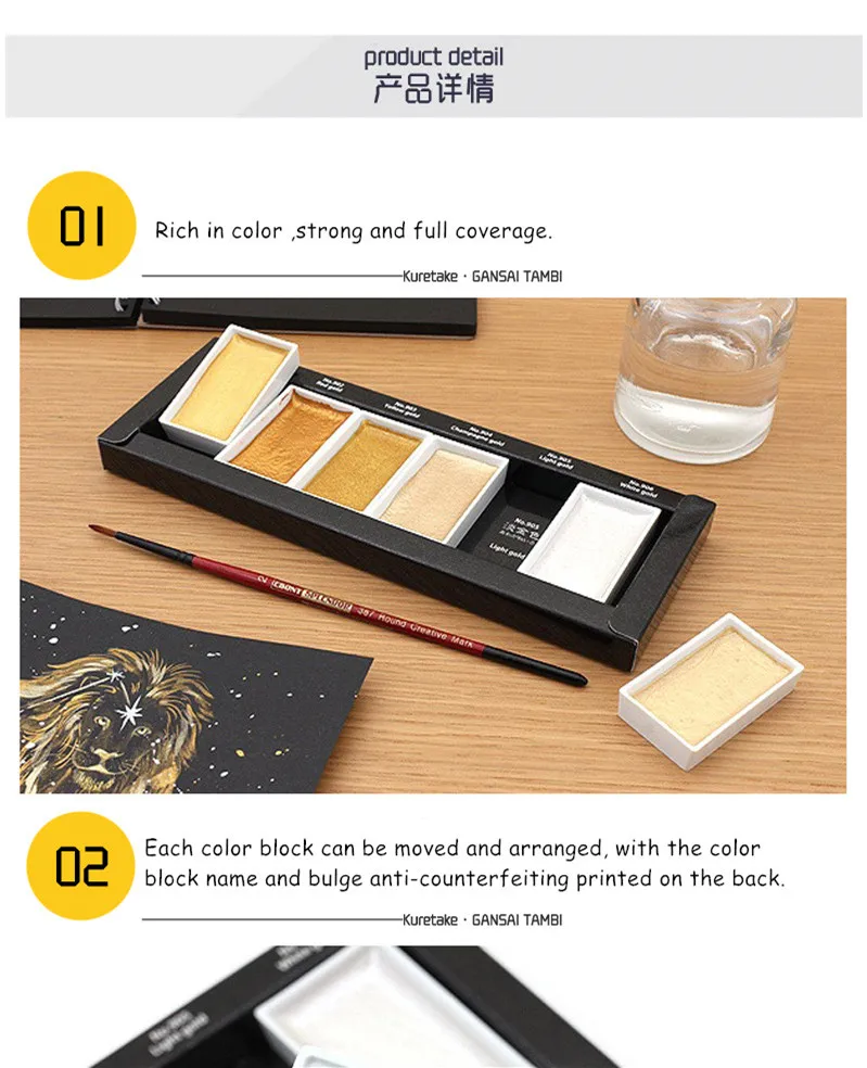 Золотая/жемчужная/Драгоценная цветная Акварельная краска из Японии, сплошной цвет, Звездный цвет, 6 цветов, традиционная китайская живопись ZIG Kuretake