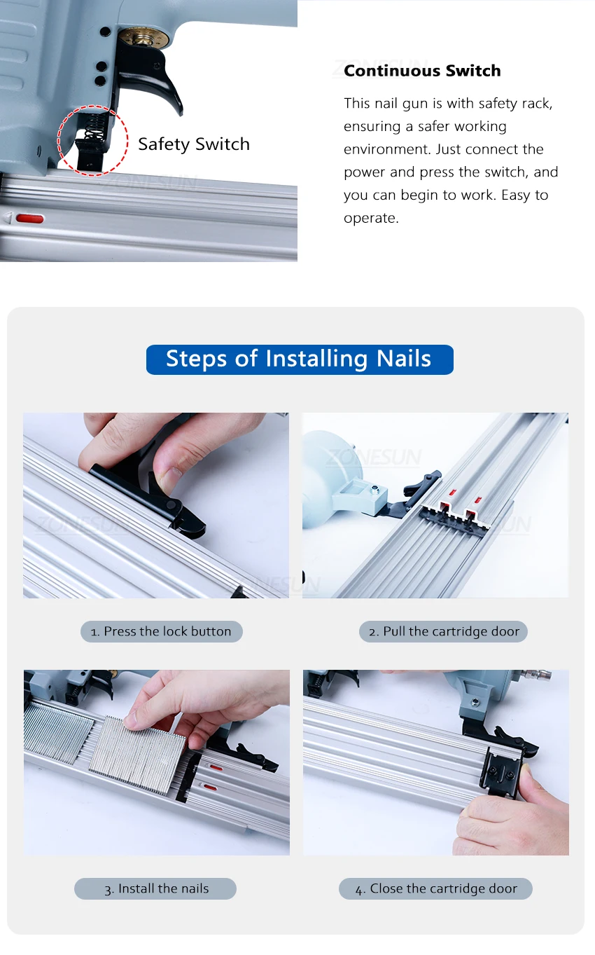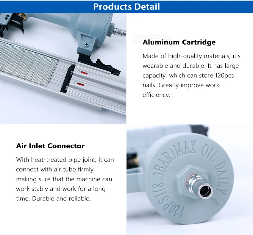 Пневматический гвоздезабивной пистолет ZONESUN, пневматический гвоздезабивной пистолет без головы для мебели, дерева, дивана, деревообработки, пневматический степлер, пистолет, инструмент