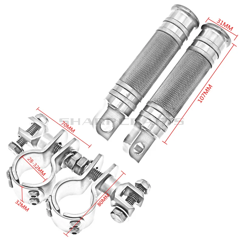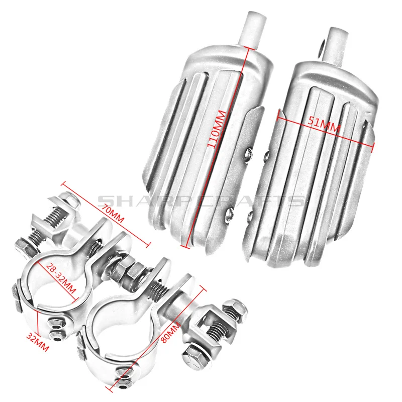 Применимость: Подходит для любых велосипедов с фокусным расстоянием 25 мм (1 "), а также, маленького размера, круглой формы с диаметром 32 мм (1-1/4")(1,25 ") защита двигателя или каркасная трубка. (Кроме защиты двигателя VRSC P/N 49267-01A, 49388-09, XL, P/N 49060-04, 49215-07, 49287-11, или мягкая ностальгическая защита двигателя P/N 49037-05A). Отлично подходит для Honda/Yamaha/Kawasaki/Suzuki/BSA/Norton/Triumph/Bobber, Chopper, Cafe racer, ATV, UTV скутер и т. Д., с 1 "и 1-1/4" ограждениями двигателя автострады. Зубчатые H-D Стиль мужской Гора (pr) подножки Рекомендуется легко устанавливается, но устанавливается профессионалом! Пожалуйста, убедитесь, что эта деталь подходит для вашего мотоцикла перед заказом!