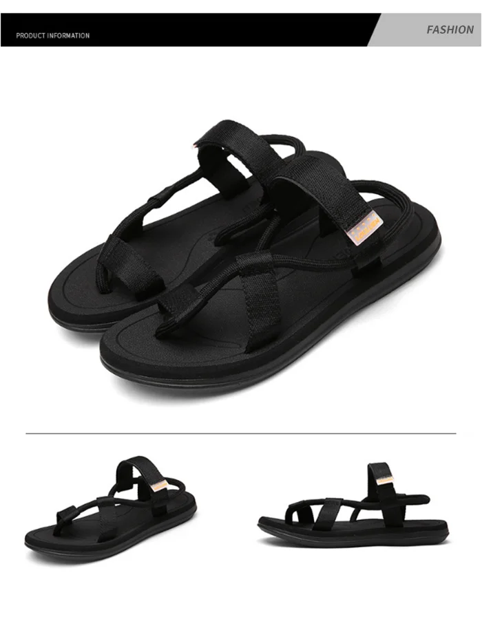 Мужские черные пляжные сандалии, спортивная обувь унисекс высокого качества на плоской подошве, уличные Нескользящие тапочки, шлепанцы высокого качества, лето 2019
