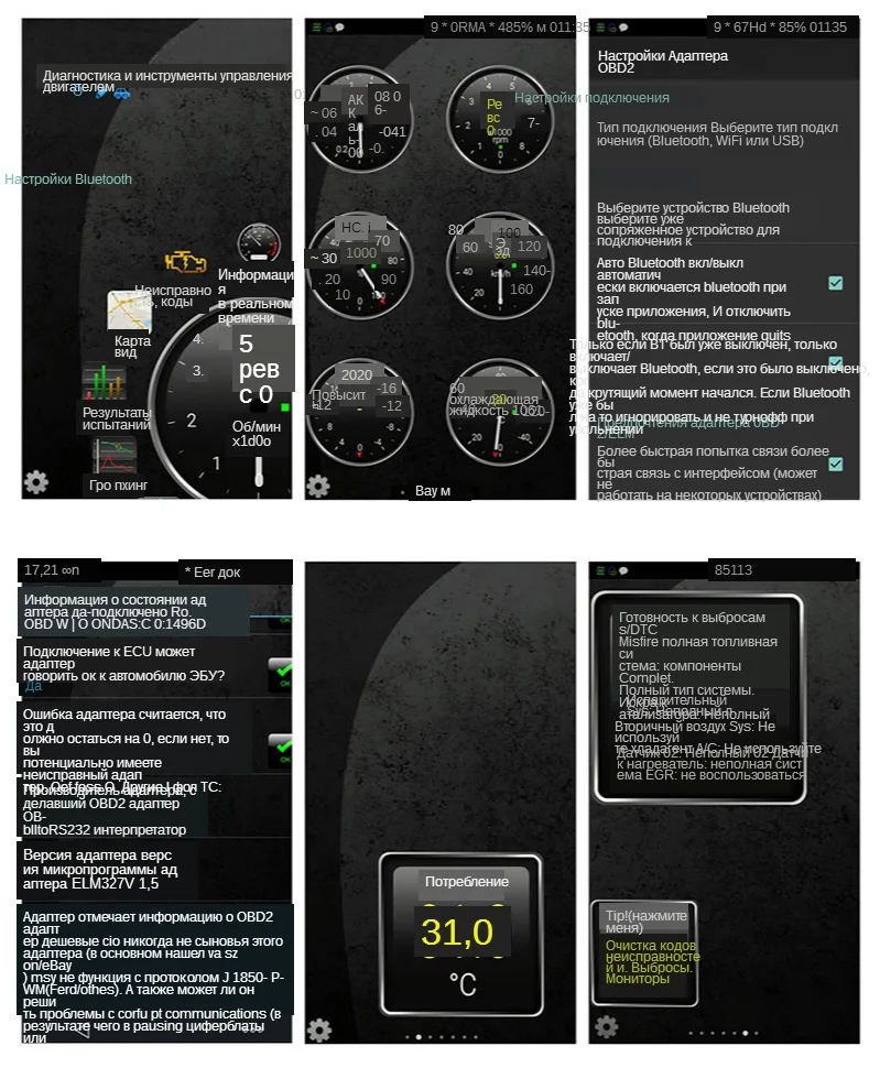 * Чтение диагностических кодов неисправностей, как общих, так и конкретных от производителей, и отображение их значения (более 3000 общих кодов в базе данных).