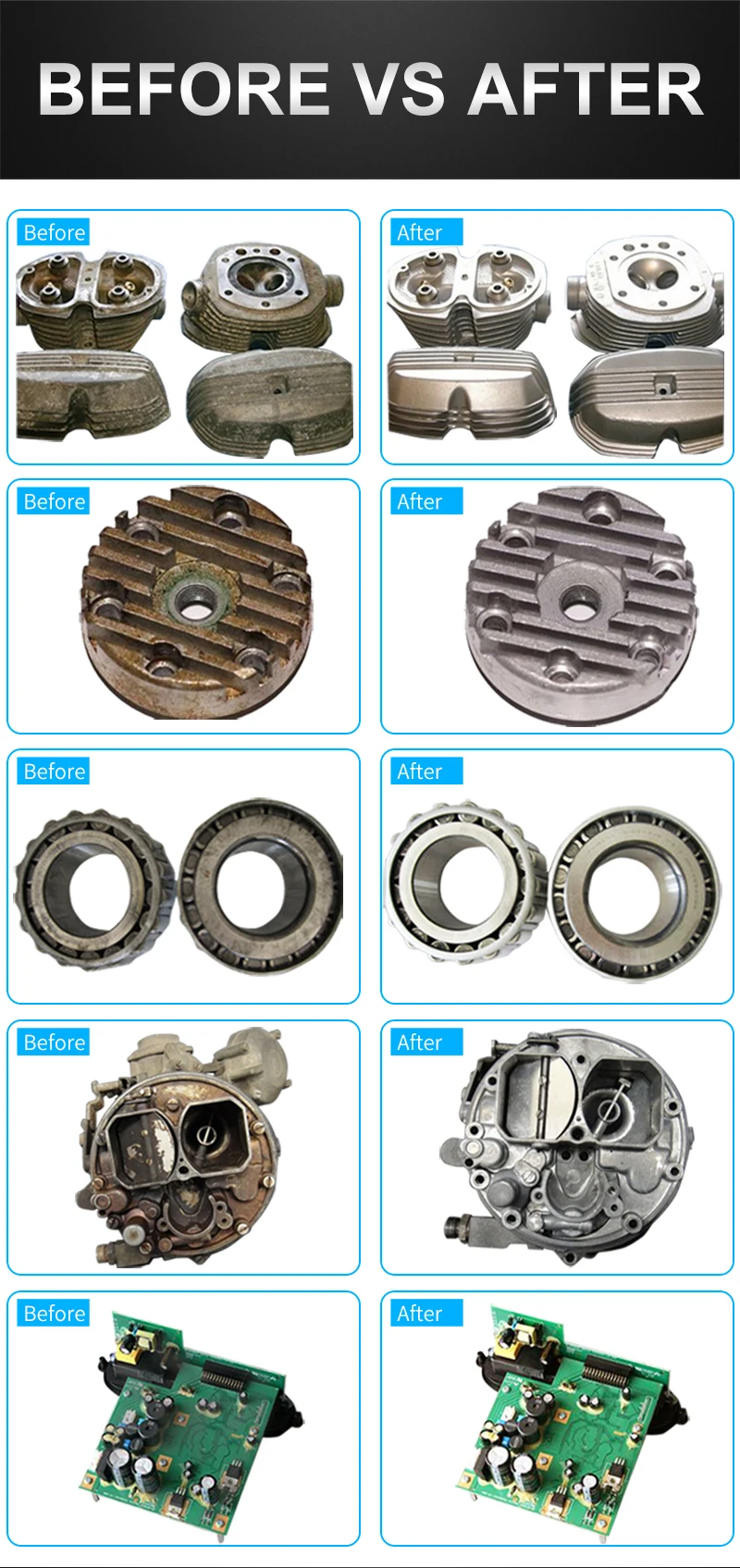 Фактический процесс очистки осуществляется в резервуаре ультразвуковой очистки. Корзина, поддерживающая детали, опускается в нагретый раствор, где она подвержена ультразвуковому декавитации. Погруженные части получают ультразвуковую чистящую ванну через силу антикавитационного действия ультразвуковых волн. Ультразвуковой чистящий раствор и процесс декавитации работают, чтобы «отчистить» часть чистой от масла, грязи, мусора и окисления.