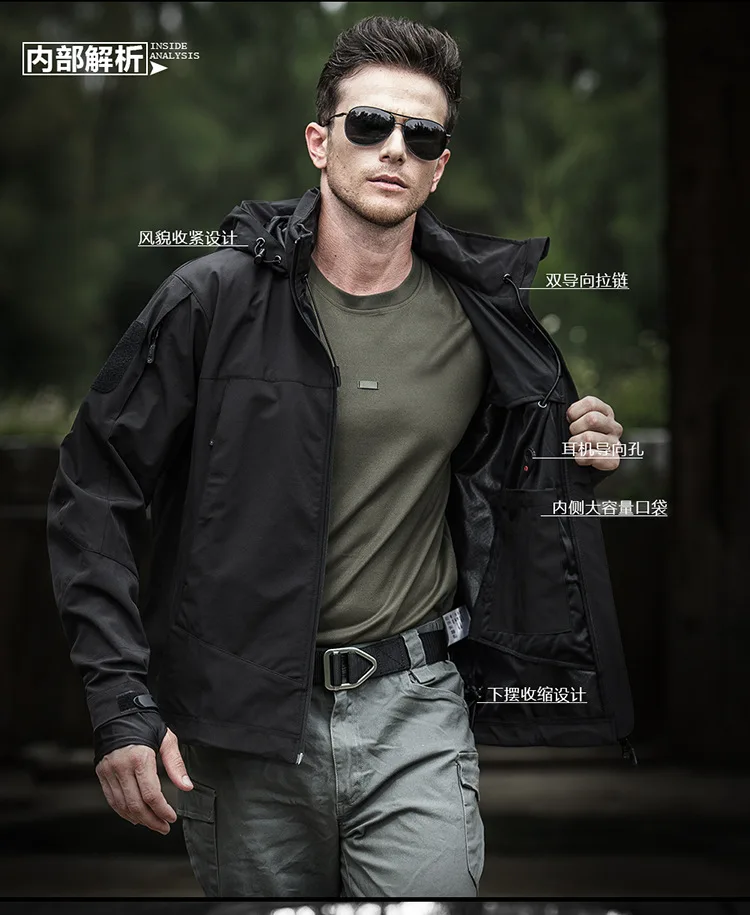 Мужская тактическая флисовая куртка с капюшоном для альпинизма, кемпинга, дышащая водонепроницаемая одежда, износостойкая охотничья ветровка