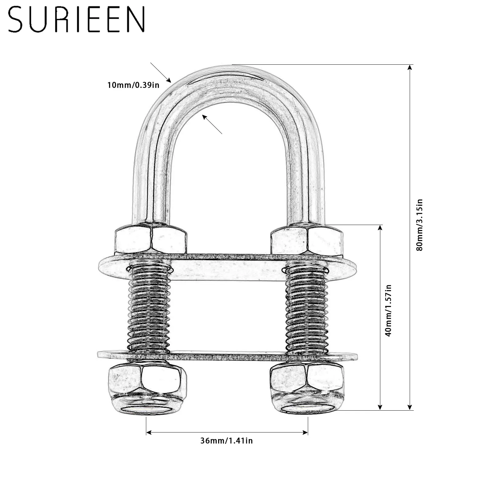 SURIEEN 1 шт. лук кормовой глаз U Болт 316 нержавеющая сталь лодка морской болт веревка и такелаж Shrouds M10 x 80 яхты лодки Аксессуары