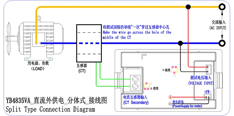 3. Сначала Подключите трансформатор тока с измерителем, затем подключите измеритель с проводом проверки напряжения. После этого не прикасайтесь к какой-либо части спины, чтобы избежать опасности поражения электрическим током. 4. Неправильное соединение между входом напряжения и трансформатором тока приведет к повреждению счетчика. Убедитесь, что трансформатор напряжения и тока подключен правильно. 5. Если ваше устройство 100 Вт или менее 100 Вт, рекомендуется использовать диапазон 10 a-тока. 6.DC8-18V электропитания счетчика является независимым. Источник питания для счетчика не должен поставляться на другие устройства.
