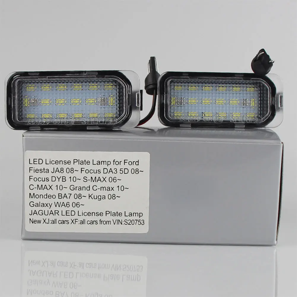 Для Ford светодиодный светильник номерного знака Fiesta JA8 2008 ~, Focus DA3 5D 2008 ~, Focus DYB 2010 ~, S-MAX 06 ~ Для Ford C-MAX 2010 ~ , Grand C-max 2010 ~, Mondeo BA7 2008 ~ , Kuga 2008 ~, Galaxy WA6 2006 ~ Для JAGUAR светодиодный светильник номерного знака, новый XJ: все автомобили XF: все автомобили от VIN:S20753