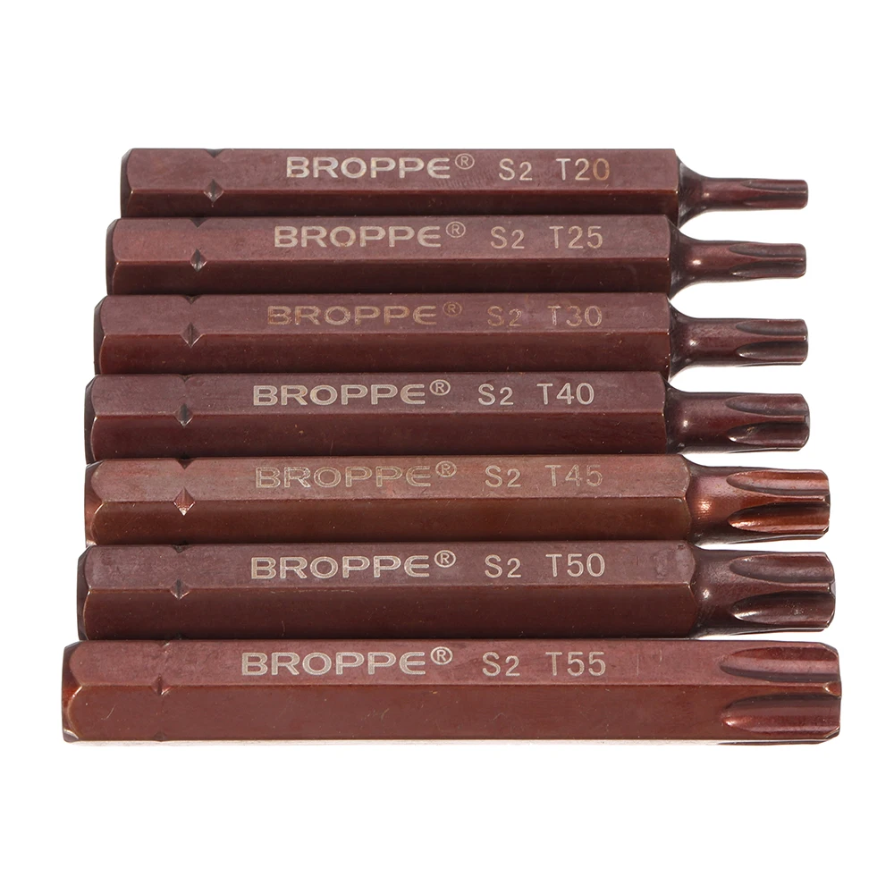 Broppe 7 шт T20-55 75 мм магнитный торкс отвертка 10 мм шестигранный хвостовик для ударной отвертки