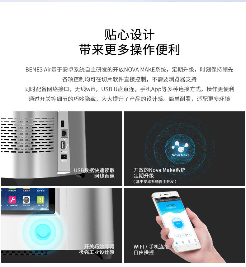 Технология: ЖК-дисплей Материал машины: пластиковый корпус PBT Наружный размер: 270x260x420mm Вес: 7,3 кг Размер печати: 130x70x150mm Точность печати: XY: 0,0517, Z: 0,01 мм Слои Толщина: 0,035/0,05/0,1 мм Ось Z: сверхтолстая линейная направляющая Скорость печати: 15-20 мм высота/ч Светильник источник: 40 Вт, длина волны: 405nm, led UV Программное обеспечение: novamakers Поддержка файлов программного обеспечения: stl, obj, slc Поддержка файлов машины: cws, slc Подключение: WIFI, u-диск, провод Операционная система: Wins, Mac Вход напряжение: 100-240V 50/60hz 2A Выходное напряжение: 12 В DC 10A Мощность: 60 Вт Разрешение ЖК-дисплея: 2K (1440x2560) Прикосновение экран: 4,3 дюймов сенсорным экраном