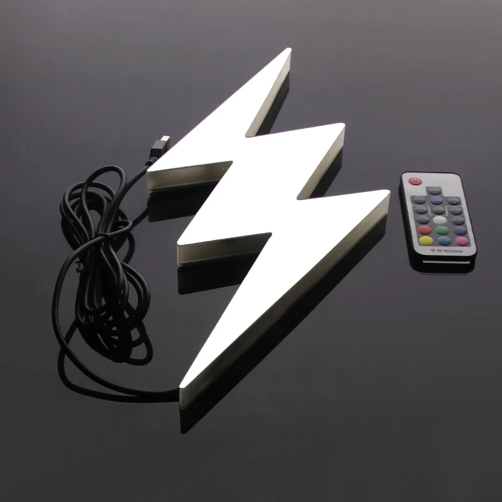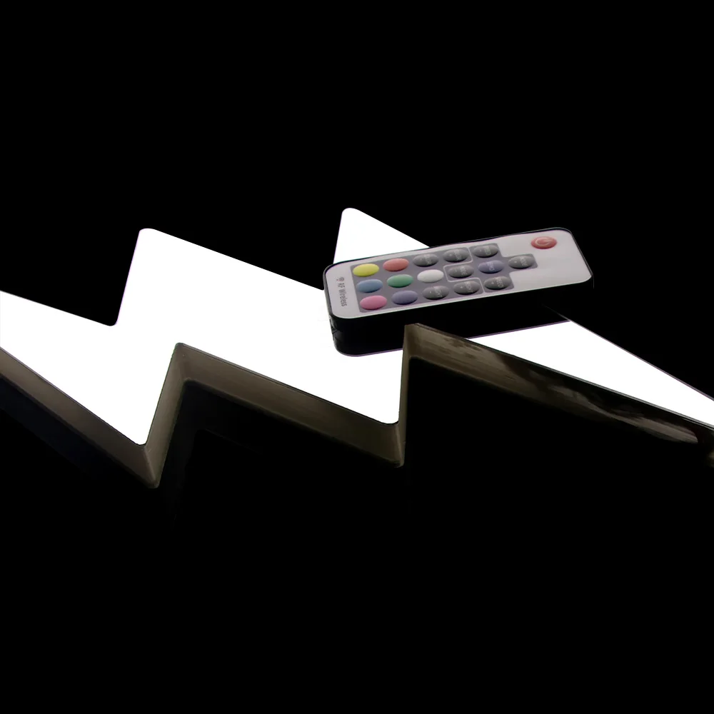 Вам будет предоставлен пульт дистанционного управления с 17 кнопками для настройки цветов светодиодного светового знака. С пультом дистанционного управления, вы будете иметь различные настройки света, которые включают в себя для включения или выключения света, пауза или воспроизведение, тусклый или изменение скорости света, а также для создания радуги цветов.