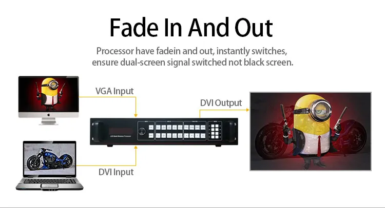 Многооконный процессор оснащен тремя мощными ядрами для обработки видео, многографическим многовходным интеллектуальным комбинированным процессором, который может широко использоваться в деятельности в области искусства, в центре управления и управления, в видеоконференции, отели, корты и конференц-залы. Процессор имеет 8 разъемов DVI и поддерживает 8 отправляющих карт. Может достигать 4 × 1, 1 × 4 и 2x2 гибридный с соединением внакрой, предпочтительнее выбирать один цвет для поддержки 10-мегапиксельный опеределяемый пользователем. Процессор может вместить широкий спектр входных источников, может получить доступ к 16 видео входам, включая 4 DVI или HDML, 4 AV, 4 VGA и 4 * 3G-SDI. Каждый канал может принимать стандартное разрешение или видео сигнал высокого разрешения, DVI, HDMI и VGA могут получать до 1920 × 1200 @ 60 Гц разрешение вход, чтобы удовлетворить различные высокой четкости выход. Процессор прост в использовании, с помощью панели клавиш и системы меню для завершения сложных настроек. RS-232 используется для дистанционного управления. Различные входные интерфейсы, для удовлетворения различных потребностей сигнала. Встроенный 4 светодиодный адрес установки карты для удовлетворения требований к установке большой экранной системы.