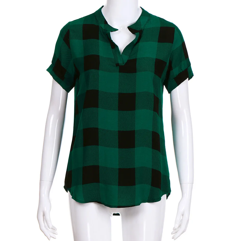 Женская Повседневная клетчатая блузка с коротким рукавом и v-образным вырезом