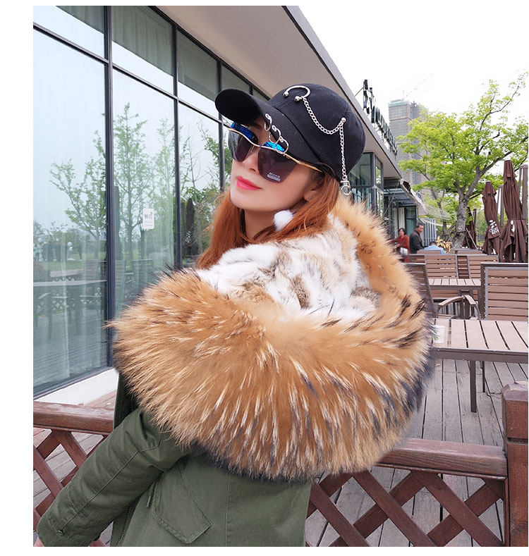 Материал: воротник из меха енота + подкладка из кроличьего меха + хлопковая оболочка