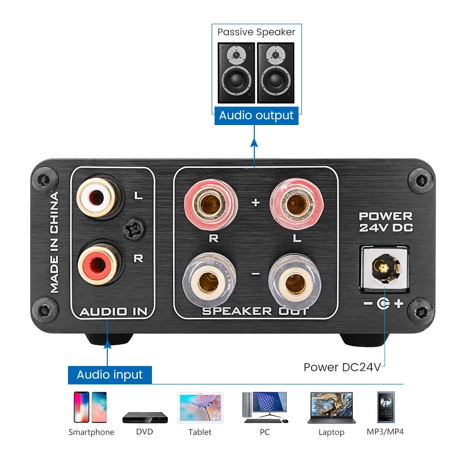 Чипы: TPA3250 + NE5532 Искажение: 0,0 1% Частотная характеристика: + 1 дБ Отношение сигнал-шум: 1 0 1 дБ Мощность: (4 Ом) 70 Вт (8 Ом) 35 Вт Чувствительность на входе: 775 мВ Сопротивление усилителя: 4 Ом 6 Ом 8 Ом Напряжение питания: постоянный ток 1 2-2 4 в Размер: 158X92X42 мм