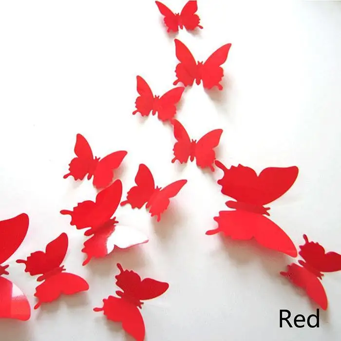 Содержание упаковки: 12 шт. х Наклейка на стену бабочки, 1 х лента