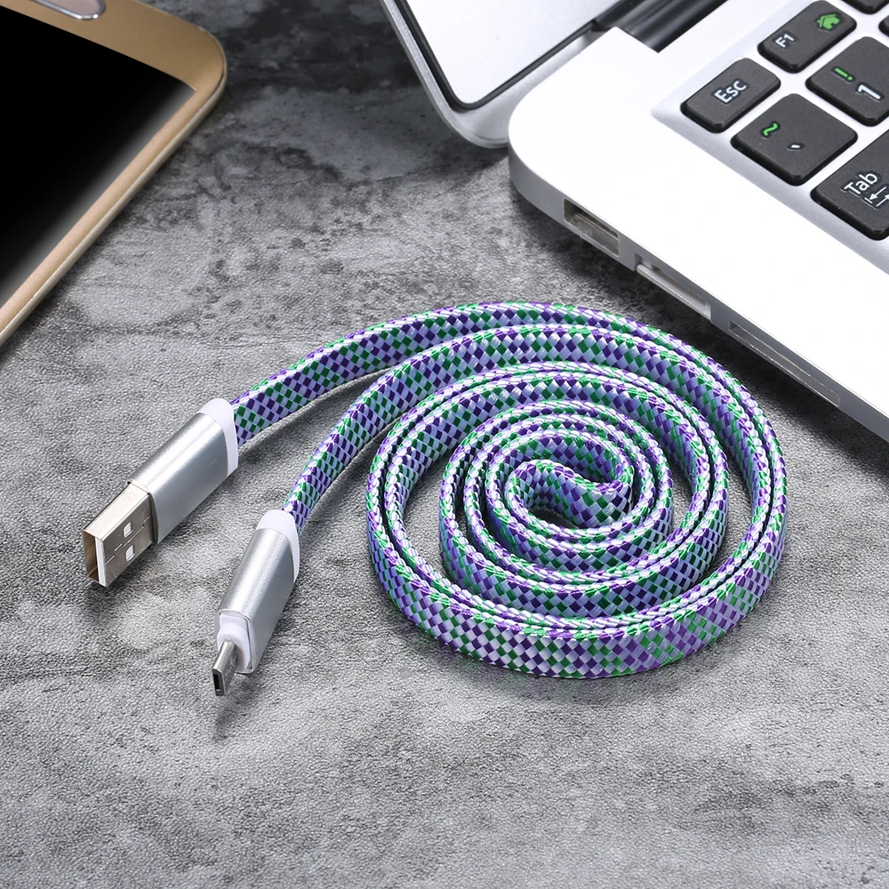 USB Type-C плетеный кабель Плоский зарядный кабель передачи данных 1 м для Samsung Huawei