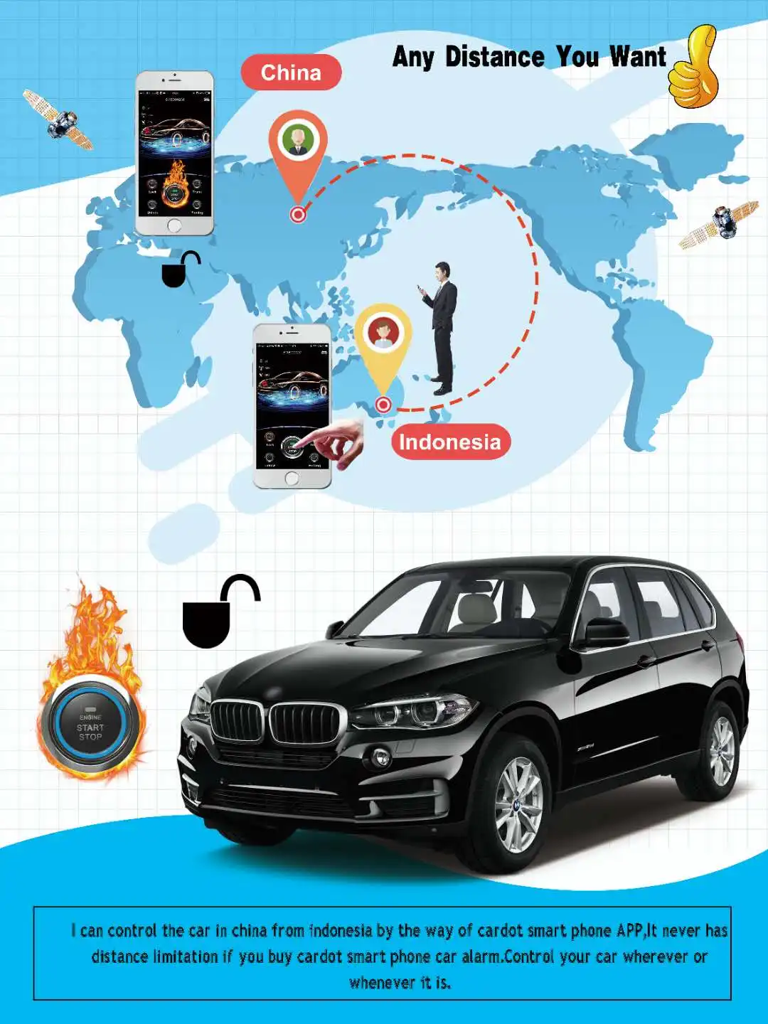 Этот продукт работает для тех ключей старта автомобилей без оригинальной кнопки заводского старта, если ваш автомобиль имеет оригинальную заводскую кнопку старта, пожалуйста, свяжитесь с нами, чтобы купить наш другой продукт