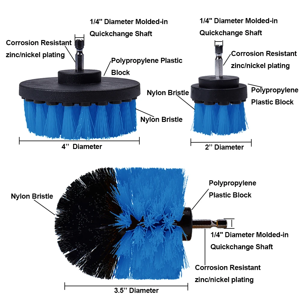 Этот комплект содержит 3 шт. щетины средней мощности нейлона, которые будут прикреплены к вашему любимому беспроводному сверлу