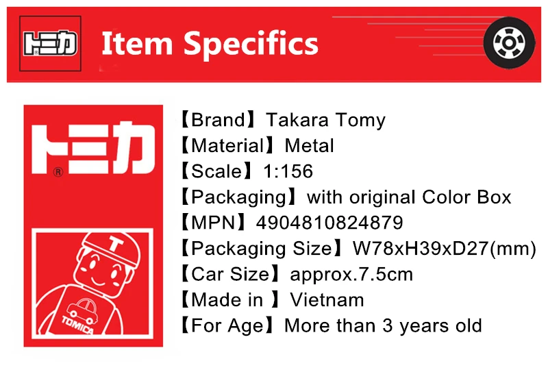 Номер товара. : 4904810824879 Производитель: TAKARATOMY Бренд: Tomica Размер посылка: W78 x H39 x D27 мм Целевой возраст: 3 года ~