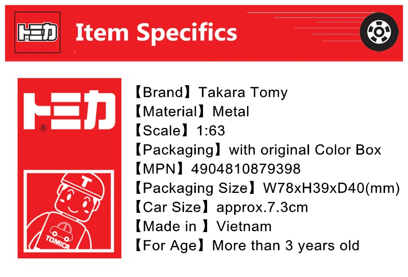 Номер товара. : 4904810879398 Производитель: TAKARATOMY Бренд: Tomica Размер посылка: W78 x H41 x D39 мм Целевой возраст: 3 года ~