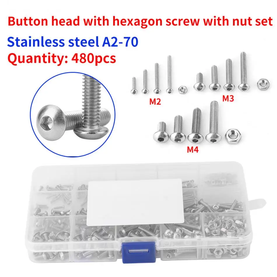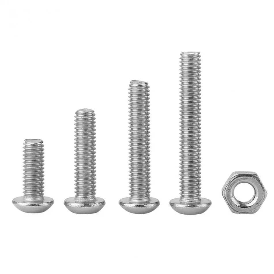 Изготовлен из 304 материала из нержавеющей стали, 304 материал из нержавеющей стали обеспечивает прочность и обеспечивает хорошую коррозионную стойкость во многих средах. Отлично подходит для использования в замкнутых местах как fIxing компонент, промышленные и строительные крепежи. Есть много Различная длина винтов для головки кнопки, которые вы можете использовать для различных целей и проектов. Всего 480 штук винтов иГайки Для общего использования Удовлетворить ваши ежедневные основные потребности. Широко используется на бытовом и офисном оборудовании, коммуникационном оборудовании, судовой сборке и других отраслях машиностроения.