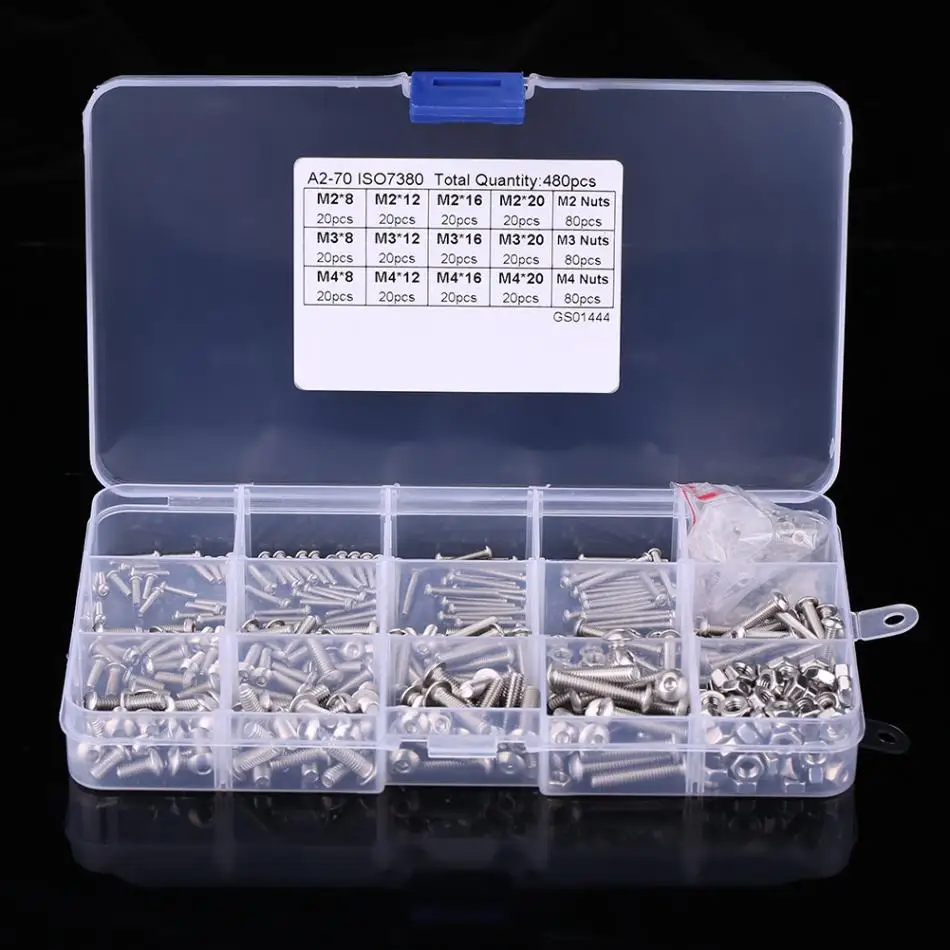 480 шт./компл. M2 M3 M4 винты с шестигранной головкой и гайки набор для насадок 304 нержавеющая сталь винт и гайки крепежная фурнитура