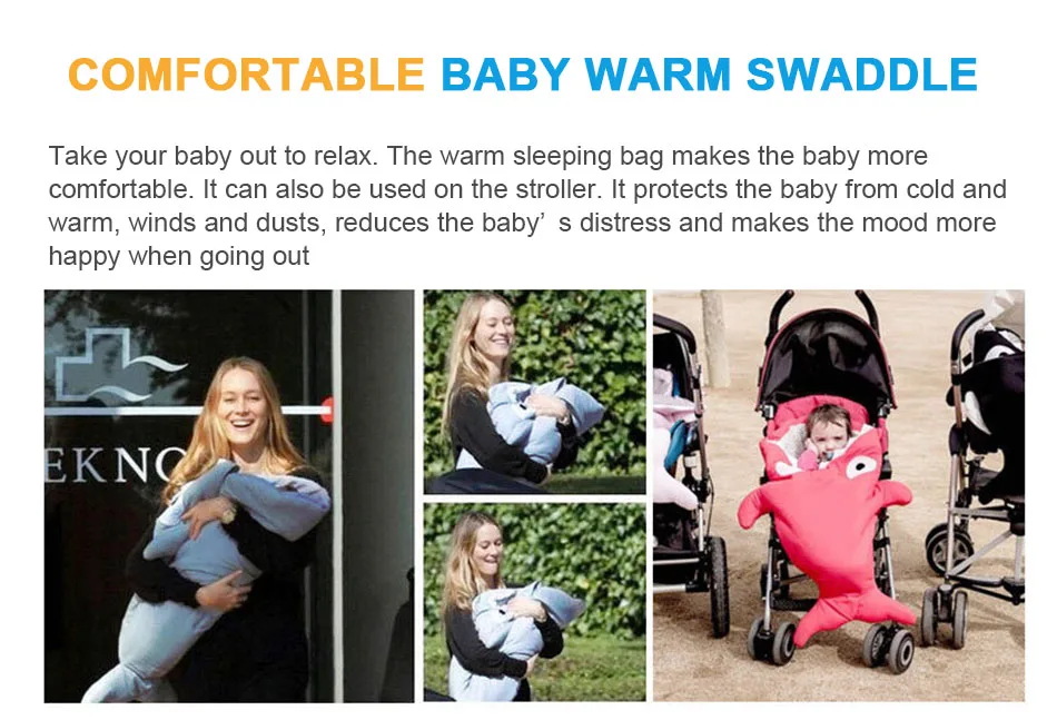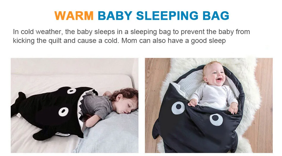 Спальный мешок для малышей, 6 цветов, милый спальный мешок с рисунком акулы для малышей, мягкое толстое одеяло, теплое Пеленальное Одеяло с изображением акулы для новорожденных