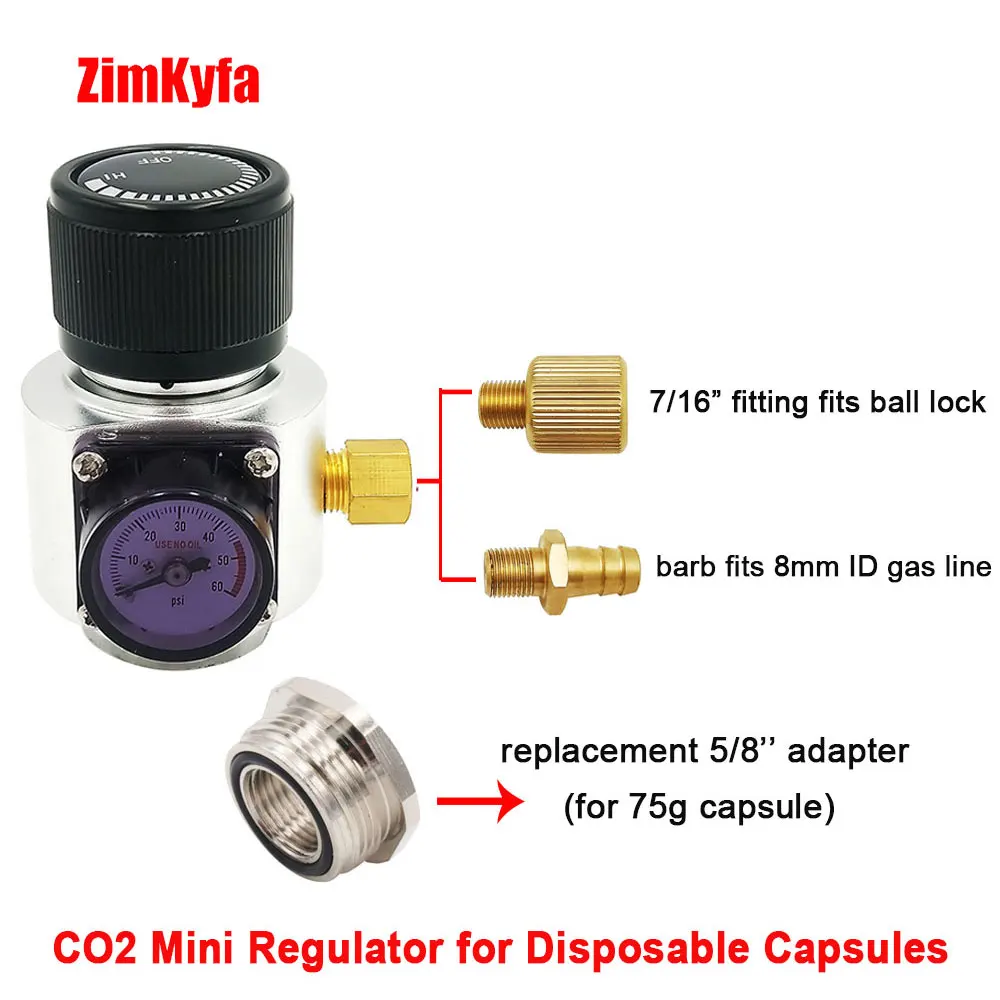 Примечание:Вам необходимо использовать дополнительный адаптер для подключения СО2 картриджей или бутылок (зависит от вашего требования) к этому регулятору, за исключением 3/8 "резьбовой капсулы.