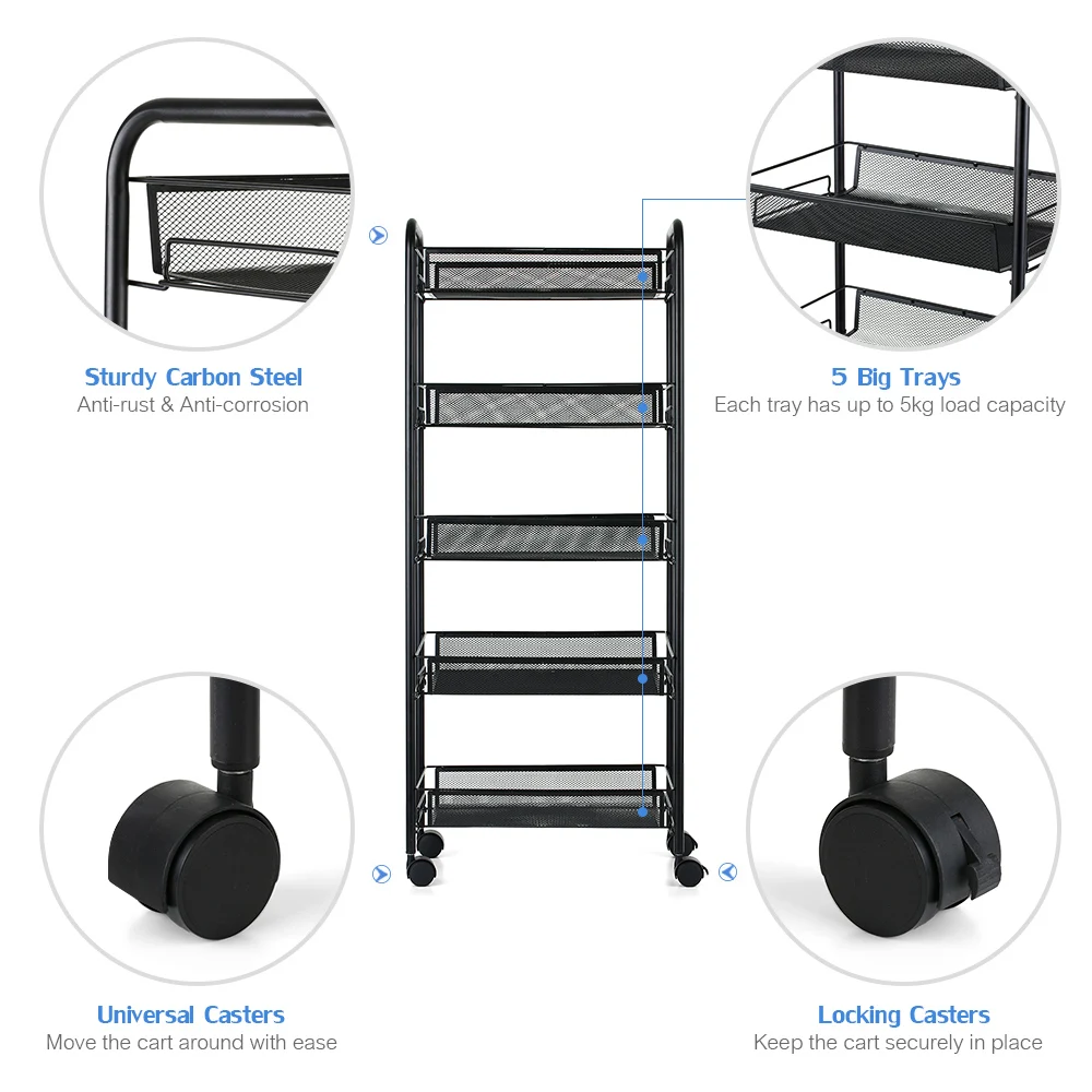 5 круглый Ланч-бокс домашний стеллаж для хранения полки сетки проволочный прокатный тележка для хранения Организатор для Кухня кладовая Спальня Ванная комната Гостиная