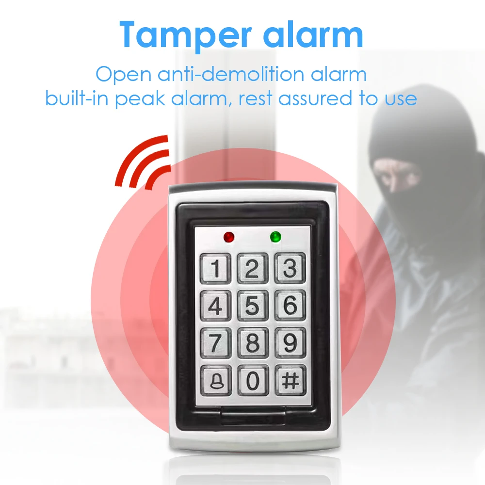 Особенности:1. Высокое качество и высокая безопасность2. Металлический чехол для лучшей защиты3. Поддержка 1000 стандартных пользователей4. Поддержка режимов входа: Только пароль/только ID-карта/пароль + ID-карта5. Можно добавить номер карты и удалить номер карты по вашему требованию6. Классический внешний вид с полезной функцией7. Функция сигнализации8. С выходом реле блокировки, безопасный/нормальный режим, нет/NC выход9. Встроенный звонок может подключить внешний звонок10. Предназначен для дома и офиса11. Встроенный кард-ридер (125 кГц АСК модуляции)12. Встроенная клавиатура для ввода ПИН-кода13. Чувствительность и быстрое реагирование14. Вспомогательный вход и вспомогательный выход15,8 вспомогательные режимы, включая: дверь ajar, принудительная дверь, шунт, дверной монитор, нормальный/Безопасный16. Внутренний зуммер17,2 состояние/интерфейс программирования LED'S18,2 режимов работы: нормальный режим, безопасный режим19,3 пользовательских рычагов: обычный пользователь, безопасный пользователь, главный пользователь20. Функция поиска кода, которая помогает облегчить сохранение пользовательских кодов21. Встроенный чехол-колокольчик, колокольчик, сирена, резервная батарея, функция блокировки на выходе, доступная с питанием от mba22. Программируемое время сирены23. Программируемое время блокировки