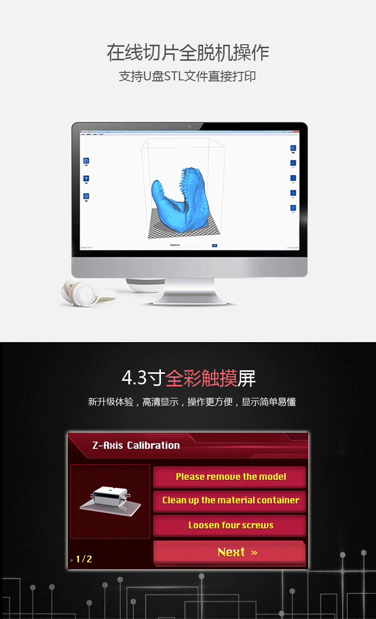 Разрешение экрана: 2560x1600 Размер конструкции: 200x192x120мм Сенсорный экран: цветной экран 4,3 дюйма Материал корпуса: металлический дизайн Ось Z: шариковый винт модуля с двойным проводом