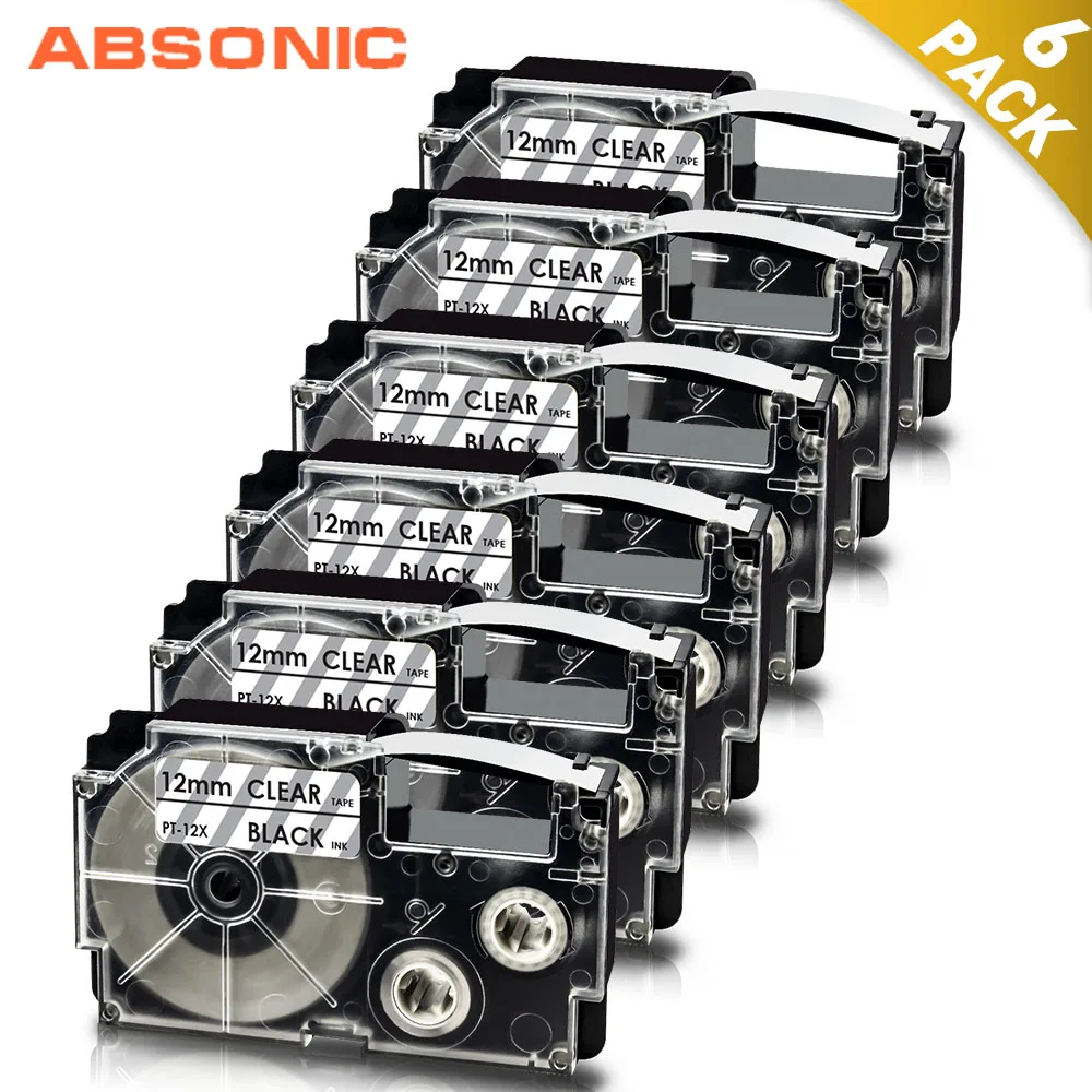Absinic 6 шт 12 мм XR-12X для Casio лейбл лента черный на прозрачной этикетке картридж XR12X XR 12X работа для Casio лейбл мейкер KL120 60