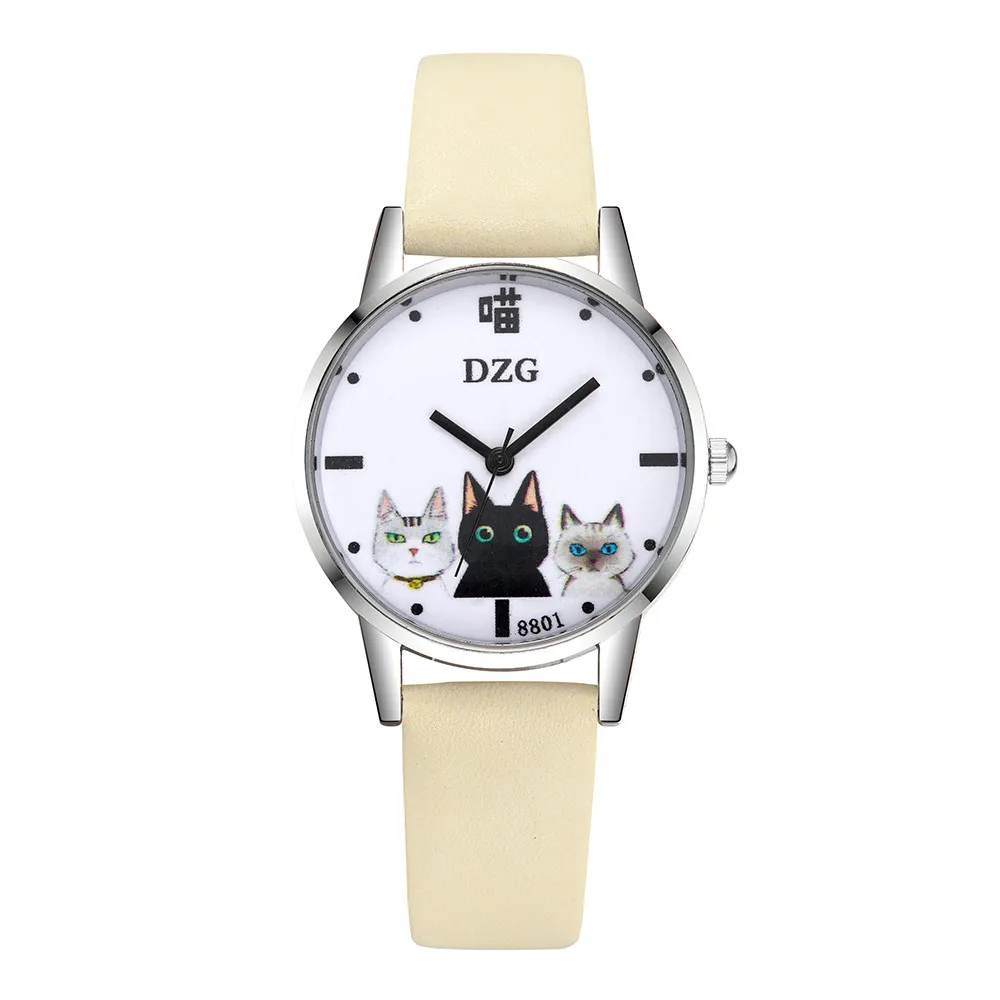 Женские модные часы с милым рисунком кота, цифровой циферблат, кожаный ремешок, Кварцевые аналоговые наручные часы Reloj de dama Y501