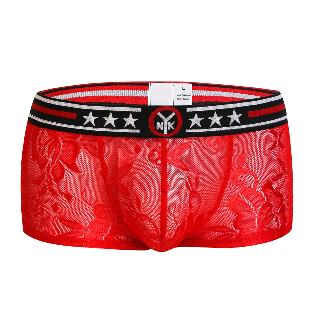 Мужское Новое Кружевное сексуальное нижнее белье, сексуальные прозрачные дышащие трусы с низкой талией