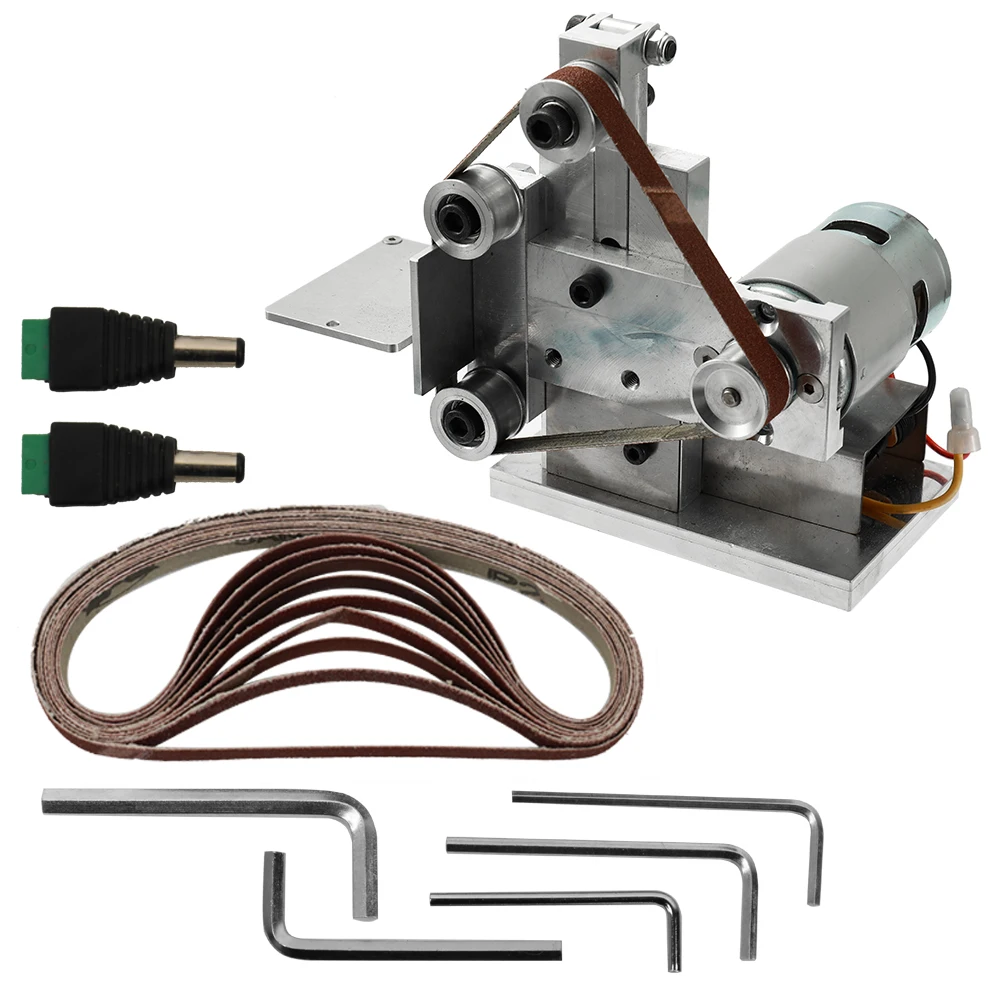 Это многофункциональный ленточный шлифовальный станок, мини портативный, низкий уровень шума, может использоваться для высокоскоростного стального сверла грубого шлифования, кромки лезвия, тонкого шлифования вольфрамовой стали токарного инструмента, полировки корень дерева Бодхи и т. Д., простой в установке и эксплуатации, это домашний инструмент DIY.