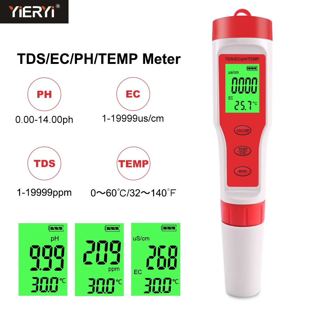 4 в 1 TDS/PH/EC/измеритель температуры с подсветкой