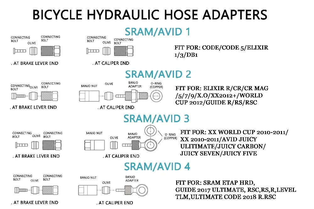 Особенности> Широкая совместимость> Можно использовать повторно> Применяется для ремонта всех марок гидравлических шлангов Пожалуйста, выберите из следующих моделей в соответствии с вашим тормозным брендом и диапазонами.SHIMANO 1Подходит: SHIMANO XTR M9000 M9020 Deore XT M8000 SLX M7000 Deore M6000SHIMANO 2Подходит: SHIMANO M315 M375 M395 M416 M447 M486 M515 M525 M575 SRAM / AVID 1Подходит: код/код 5 / ELIXIR 1/3 / DB1SRAM / AVID 2Подходит: ELIXIR R/CR MAG/5/7/9/X.O/XX2012 +/Чемпионат Мира 2012/Руководство R/RS/RSCSRAM / AVID 3Подходит: XX чемпионат мира 2010-2011/XX 2010-2011/AVID JUICY ULITIMATE/JUICY CARBON/JUICY 7/JUICY 5SRAM / AVID 4Подходит: Sram Etap HRD, Guide 2017 Ultimate, RSC,RS,R,LEVEL TLM,Ultimate CODE 2018 R.RSC Магура 1Подходит: GUSTAV M2000-2010/MARTA 2007-2010/MARTA GOLD 2007/MARTA SL 2008-2010/ MT8/7/6/5/4Магура 2Подходит: MT2/CLARA 2000-2002/GUSTAV M2000-2011/JULIE HP 2009/MARTA 2002-2010/MARTA GOLD 2007/LOUISE 2000-2010/LOUISE FR 2002-2006/LOUISE BAT 2008-2010/луиза Карбон 2008-2010 Формула 1Подходит: R1R/R1/R0/RX/T1/MEGAФормула 2Подходит: FORMULA ORO K18/K24/PURO НадеюсьПодходит: серия HOPE