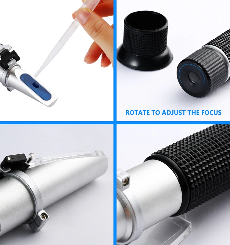 Данный рефрактометр сконструирован в соответствии с принципом, согласно которому различные концентрации жидкости имеют разный рефрактометр с разным индексом, с быстрыми и точными характеристиками. Автоматическая корректировка температуры, температура образца воды не влияет на чтение. Алюминиевый корпус, сверхпрочный и легкий светильник, небольшой объем, удобно носить с собой. Мягкая силиконовая ручка дарит приятные ощущения. Окуляр высокой четкости дает вам более широкий обзор, и вы можете читать более точно.